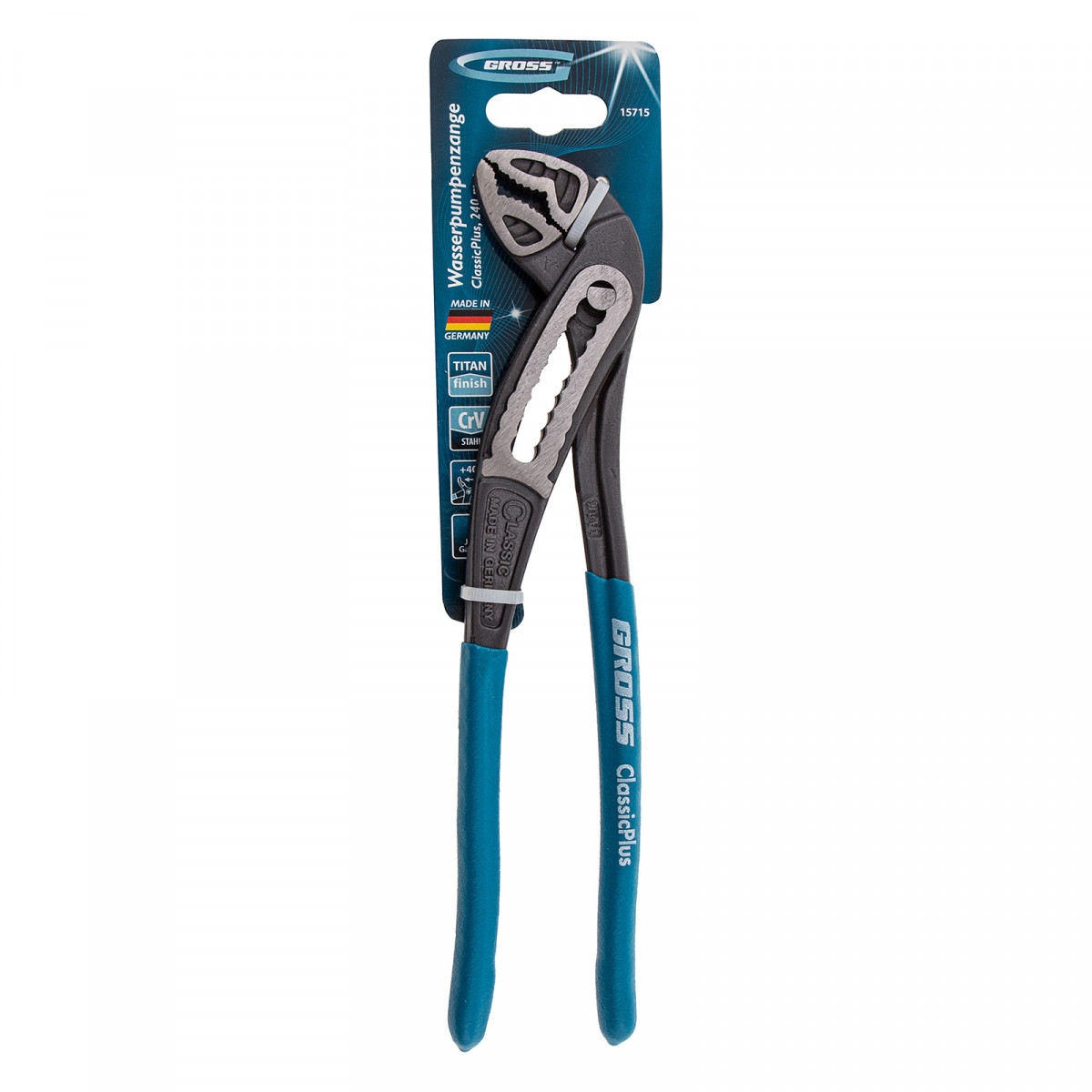 Переставные клещи Gross 15715 длиной 240 мм, из хром-ванадия, с обливными рукоятками, — универсальный инструмент для вращения, монтажа/демонтажа деталей округлой формы: труб, фитингов, гаек и т.д. С его помощью можно ускорить слесарные-монтажные, сантехнические работы даже в труднодоступных местах.