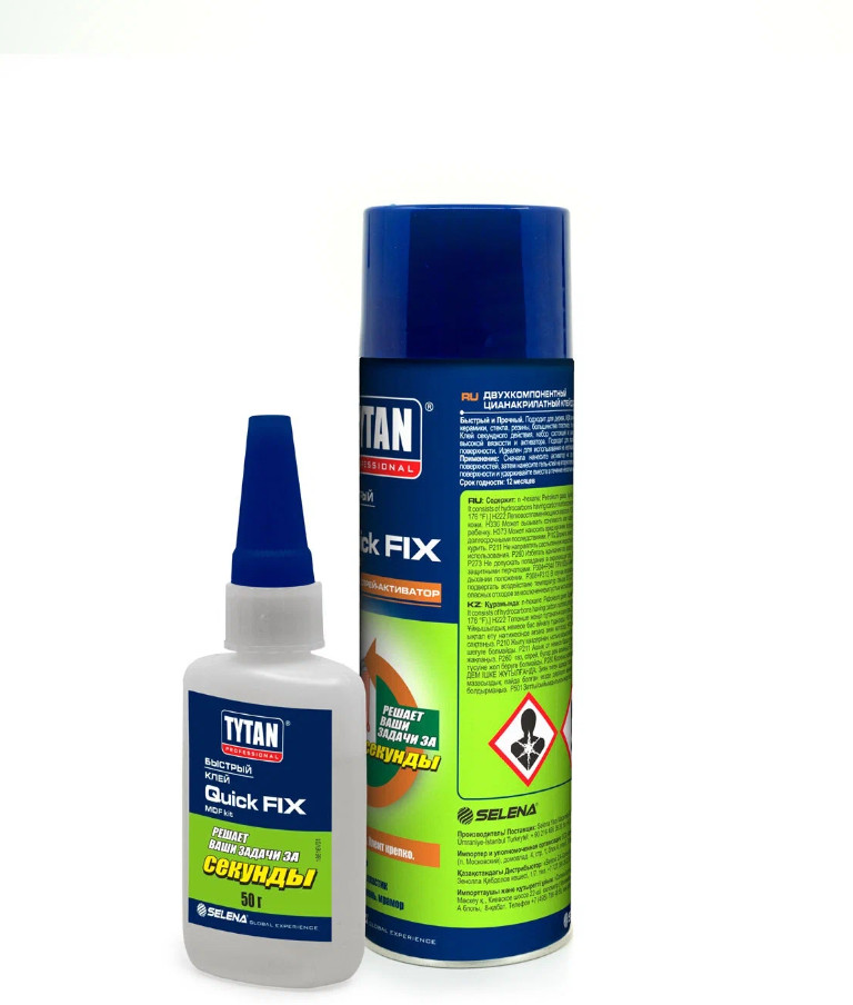 Клей Tytan цианакрилат двухкомпонентный — эффективный монтажный материал, позволяющий за считаные секунды надежно соединить две поверхности. Может использоваться для дерева, камня, резины, МДФ и большинства пластиков. Клей подходит для обработки пористых поверхностей.
