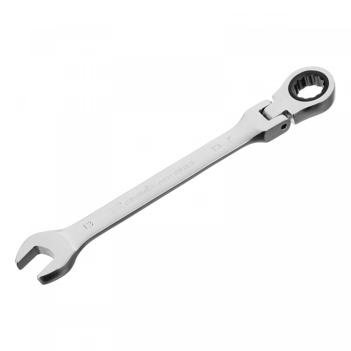 Ключ комбинированный трещоточный, 13 мм, CrV, шарнирный, зеркальный хром Matrix Professional