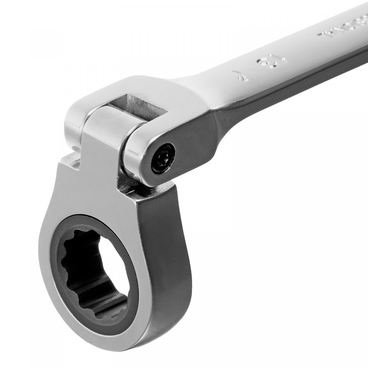 • Удобная работа в труднодоступных местах — храповой механизм на 72 зуба обеспечивает плавное вращение (шаг трещотки составляет 5°), а шарнир позволяет поворачивать рабочую часть под углом.