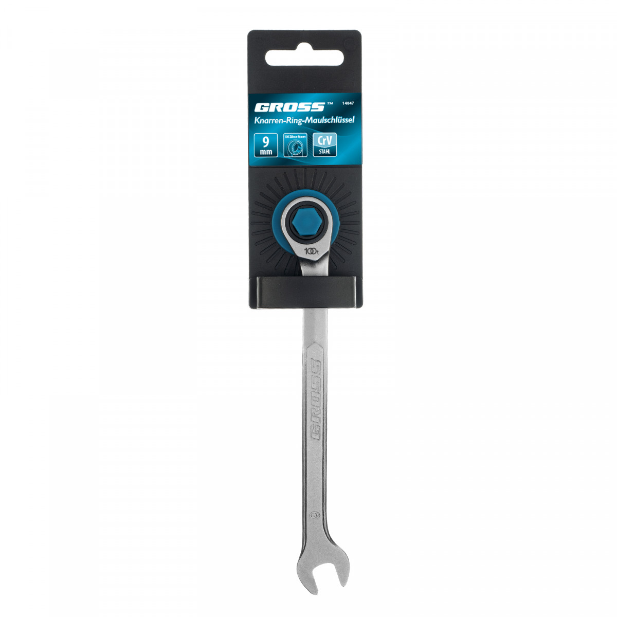 Ключ комбинированный трещоточный, 9 мм, количество зубьев 100 Gross
