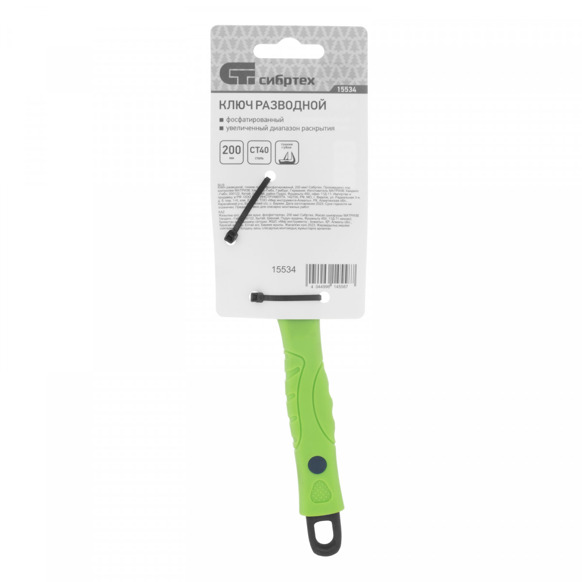 Ключ разводной, 200 мм, тонкие губки, фосфатированый Сибртех