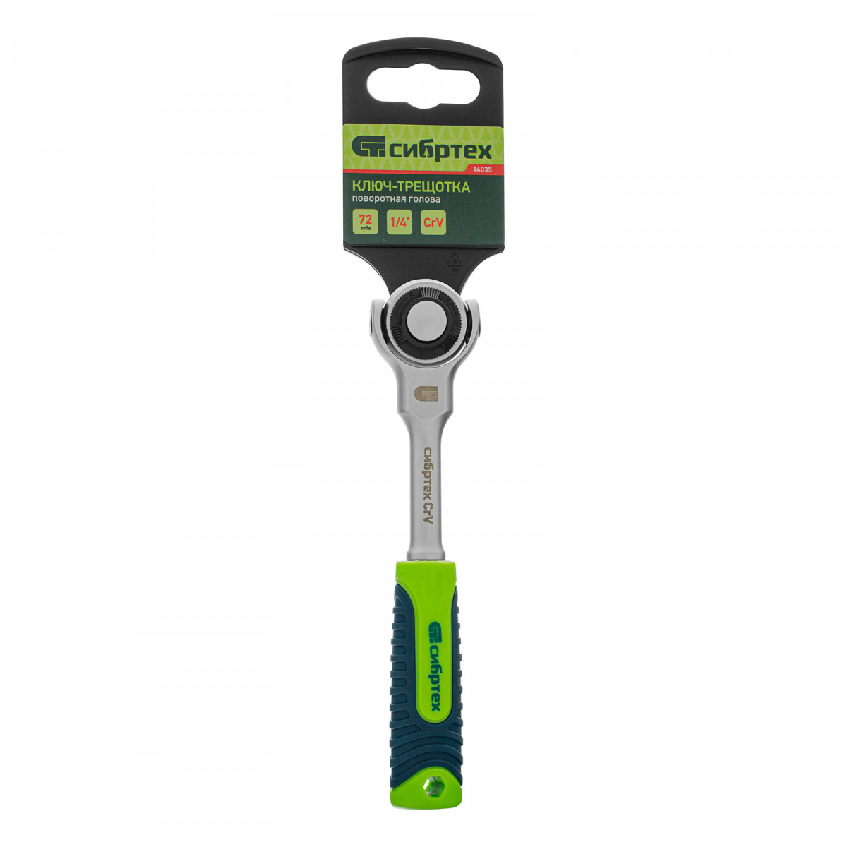 Ключ-трещотка 1/4", 72 зуба, поворотная голова, с быстрым сбросом Сибртех