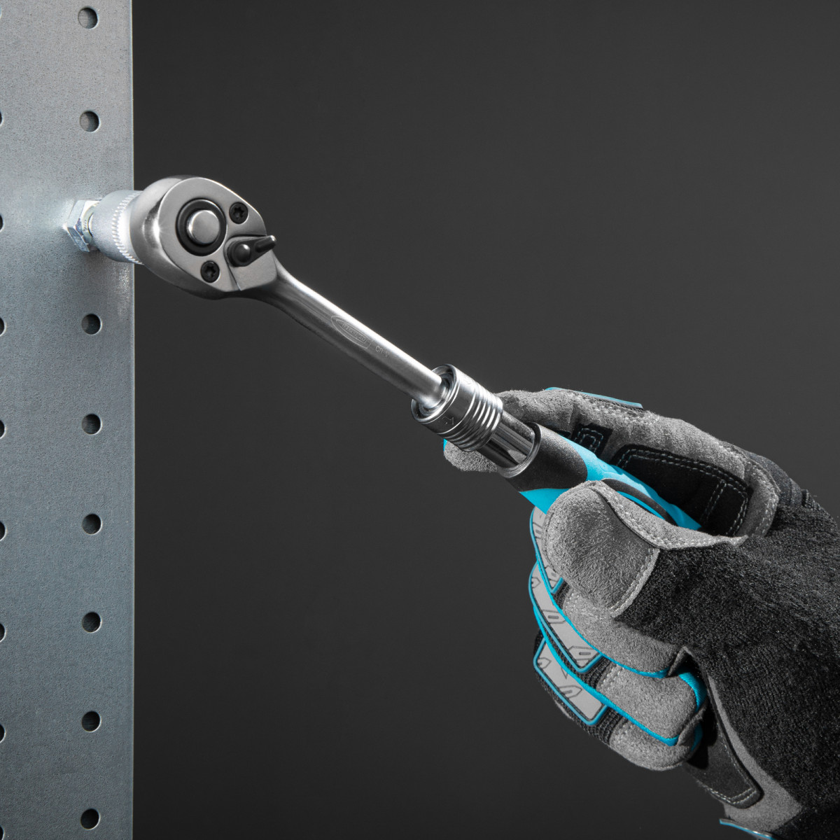 • Высокая износостойкость — ключ-трещотка изготовлен из прочной стали хромованадиевой группы.