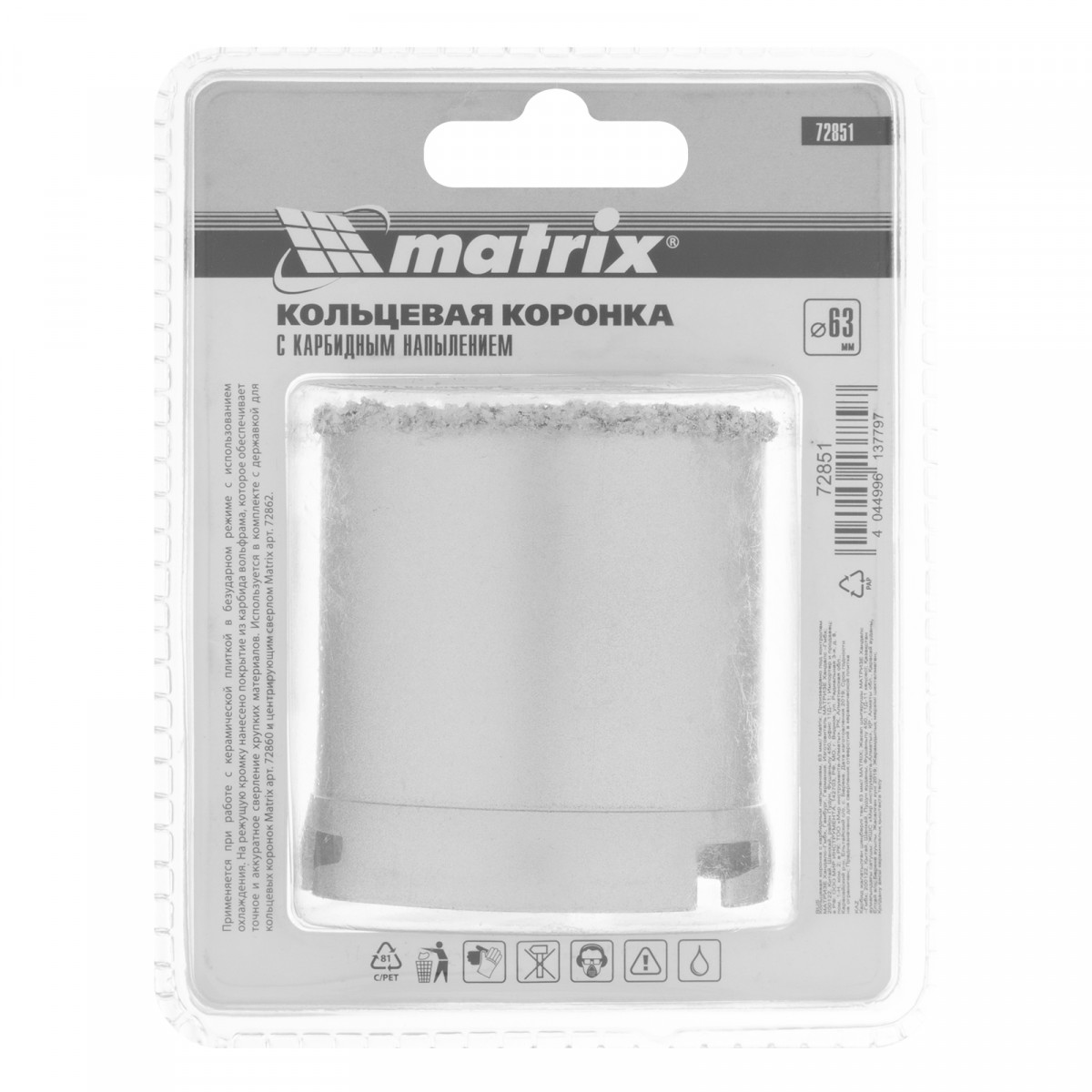 Кольцевая коронка с карбидным напылением, 63 мм Matrix
