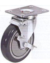 Колесные опоры аппаратные поворотные с тормозом, термо-пластичная серая резина, полипропиленовый обод, платформенное крепление, шарикоподшипник.