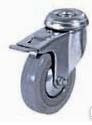 Колесные опоры аппаратные поворотные с тормозом, серая резина, полипропиленовый обод, крепление под болт, подшипник скольжения.