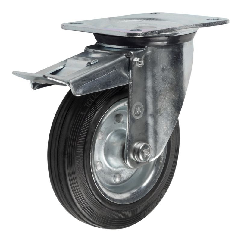 Стальной тормоз фиксирует поворот колеса и поворотный узел. Подходят для платформенных тележек, мусорных контейнеров, баков и т.д.