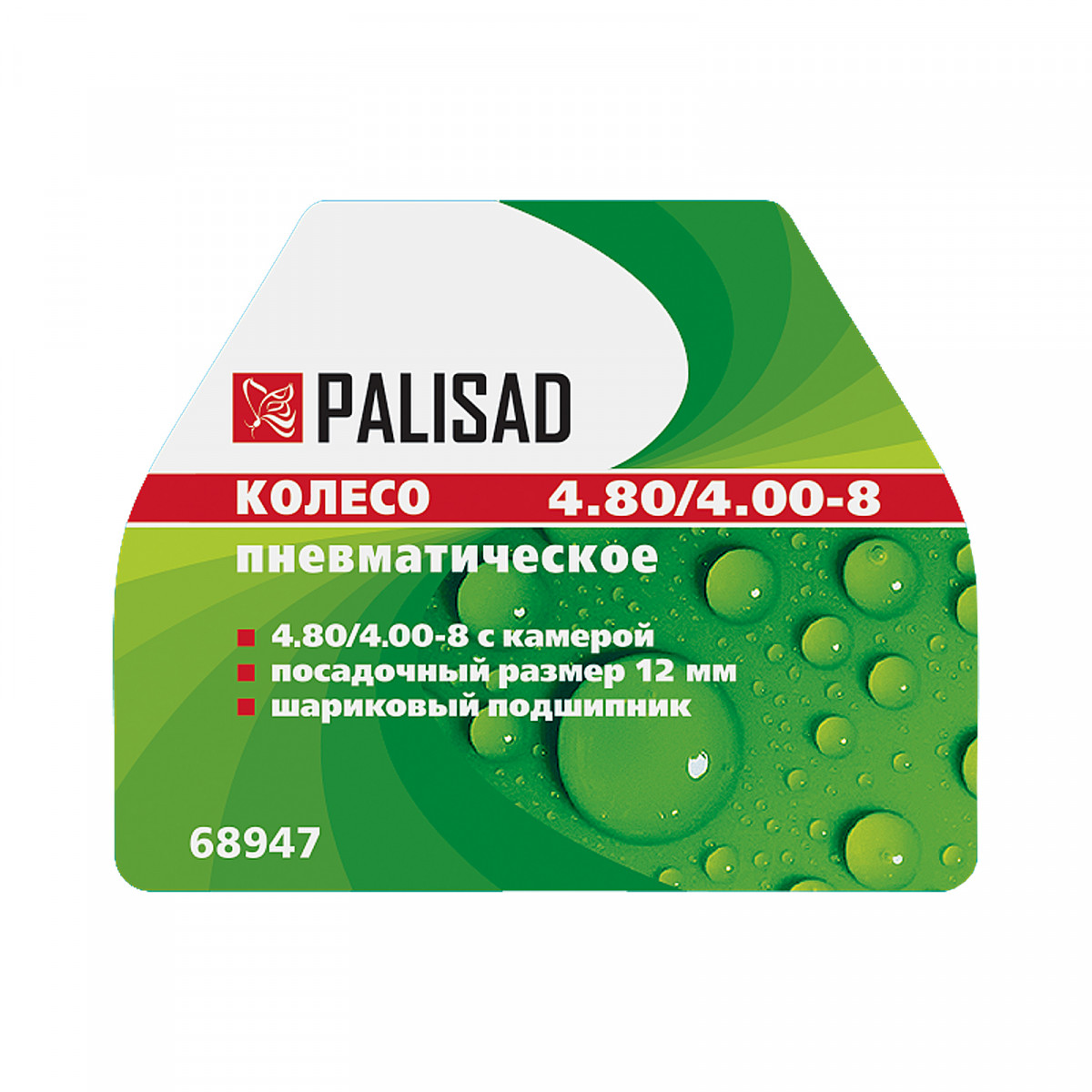 Колесо пневматическое 4.80/4.00-8 D 380 мм, внутренний подшипник D 12 мм, длина оси 90 мм Palisad