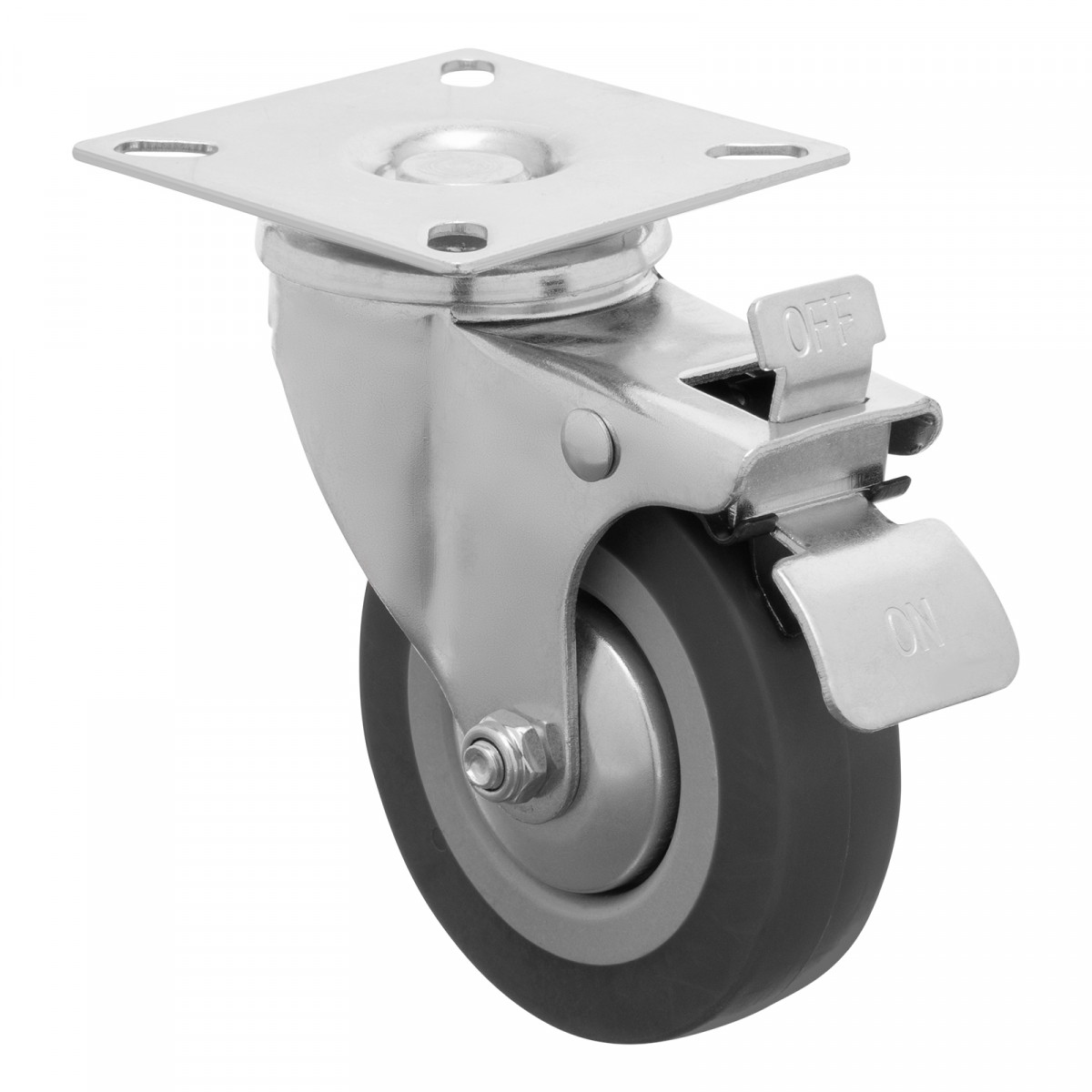 Колесо поворотное с тормозом D 75 мм, крепление платформенное Сибртех