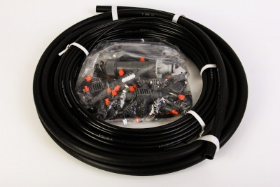 Полив в теплице площадью до 10 м., распыляющие микронасадки для полива рассады и молодых растений, а также капельницы для полива отдельных растений. Комплект: 1 мастер-блок 1000, 5 м магистрального шланга 13 мм (1/2”), 25 м подающего шланга 4,6 мм (3/16”), 40 капельниц внутренних 2 л/час, 2 соединителя переходника Т-образных, 1 соединитель Т-образный 13 мм (1/2”), 2 заглушки 4,6 мм (3/16”), 2 заглушки 13 мм (1/2”), 20 колышков для шланга 4,6 мм (3/16”), 1 игла для прочистки.