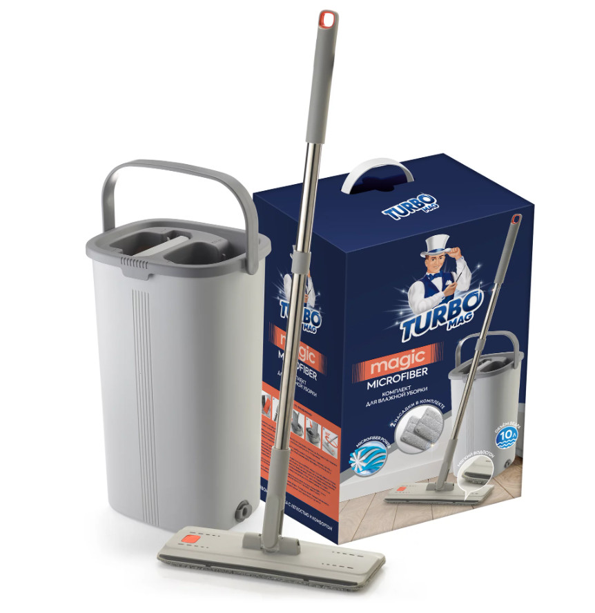 Комплект для влажной уборки TURBOMAG Magic ведро с вертикальным отжимом 10л и швабра-флеттер