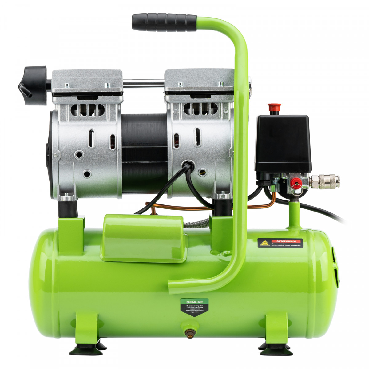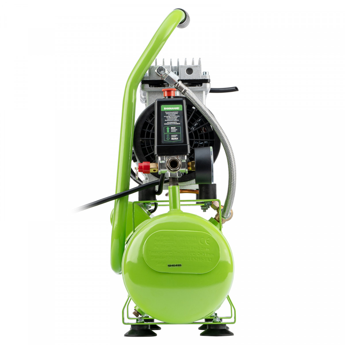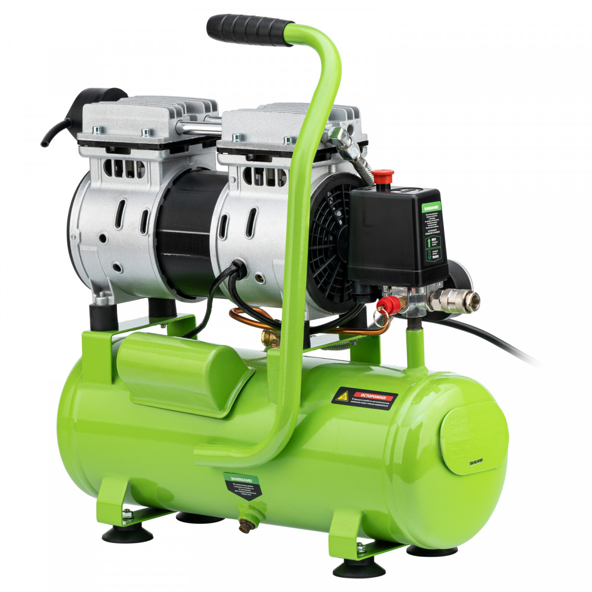 Безмасляный малошумный компрессор Сибртех МБ 750/10 58001 мощностью 750 Вт и объемом ресивера 10 л имеет производительность на входе 150 л/мин и сжимает воздух под давлением до 8 бар. Используется для обеспечения функционирования пневмоинструмента, например, краскораспылителя или пневматического шуруповерта. Для работы устройства не требуется масло, поэтому воздух на выходе не содержит его частиц. Компрессор оптимален для проведения покрасочных работ и продувки электронных компонентов.,Одна из ключевых особенностей компрессора — низкий уровень шума (в районе 65 дБ), позволяющий использовать устройство в жилом помещении без дискомфорта для людей.