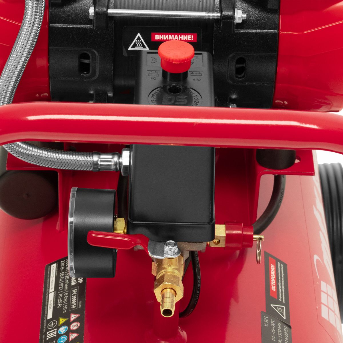 • Удобное использование — производитель предусмотрел манометр для отслеживания давления сжатого воздуха.