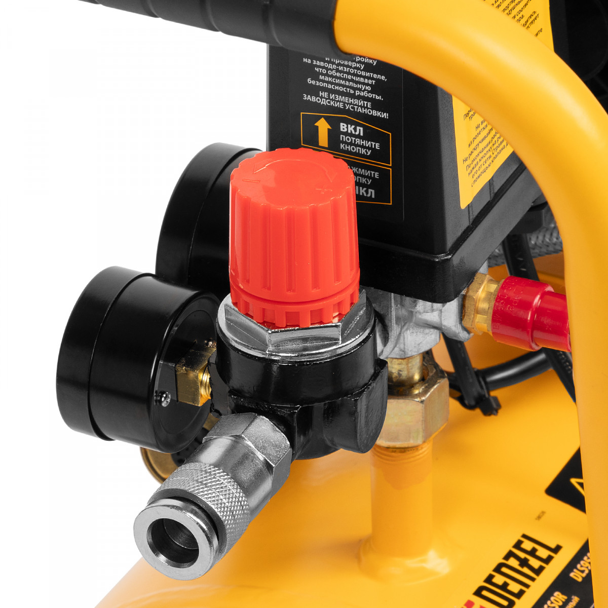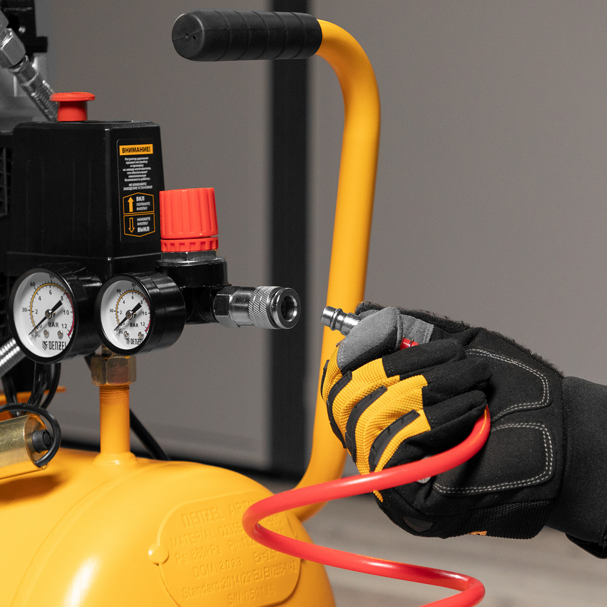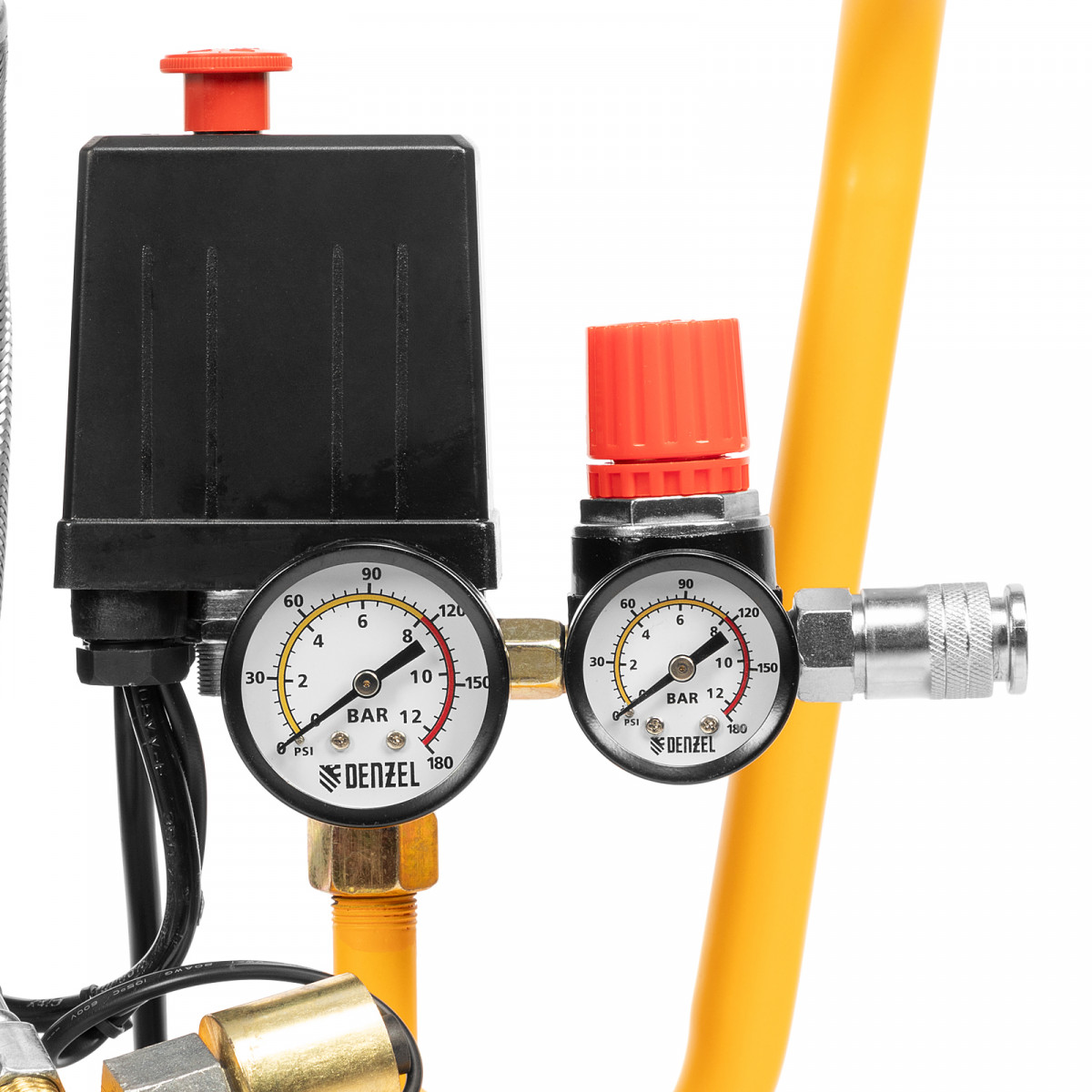 • Комфортно отслеживать параметры работы — 2 манометра позволяют контролировать давление в ресивере и пневмомагистрали, и при необходимости корректировать его.