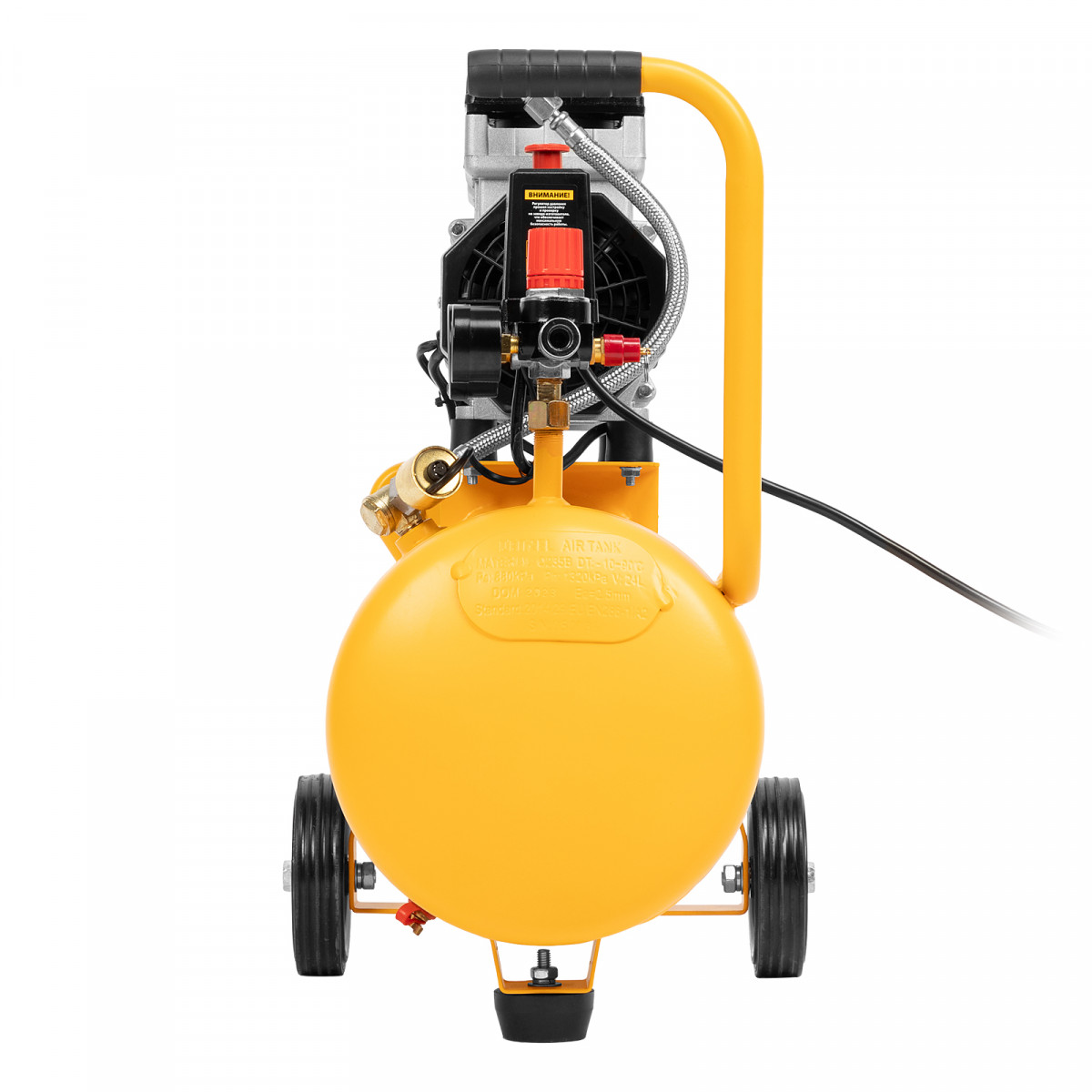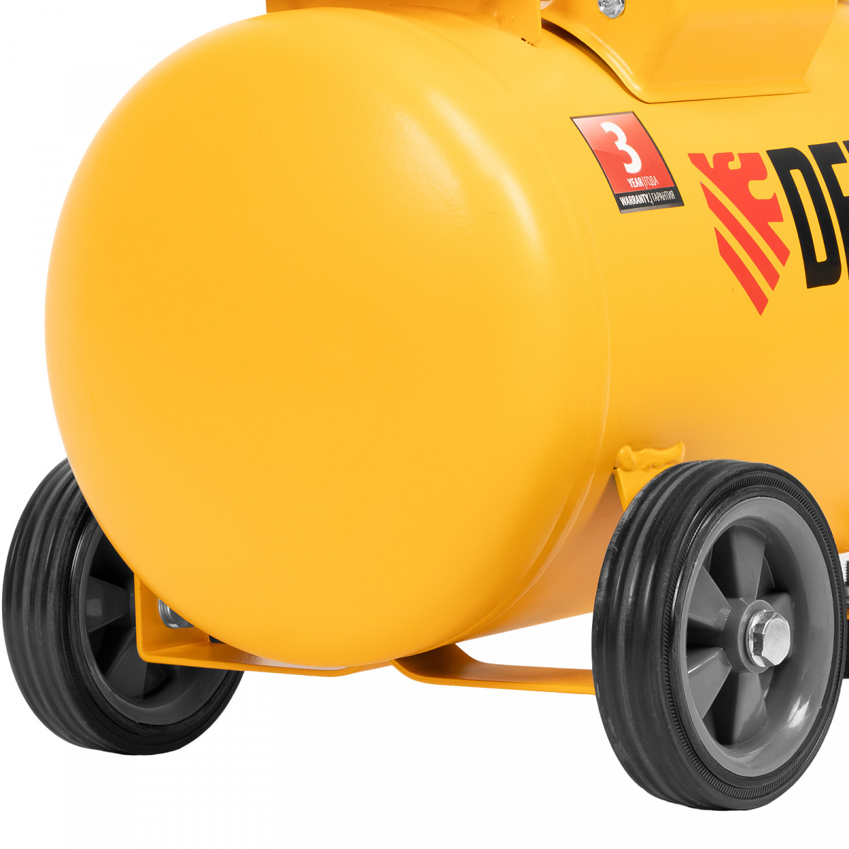 • Безопасность и высокая устойчивость — резиновые ножки гасят вибрации и удерживают компрессор на месте в процессе работы.