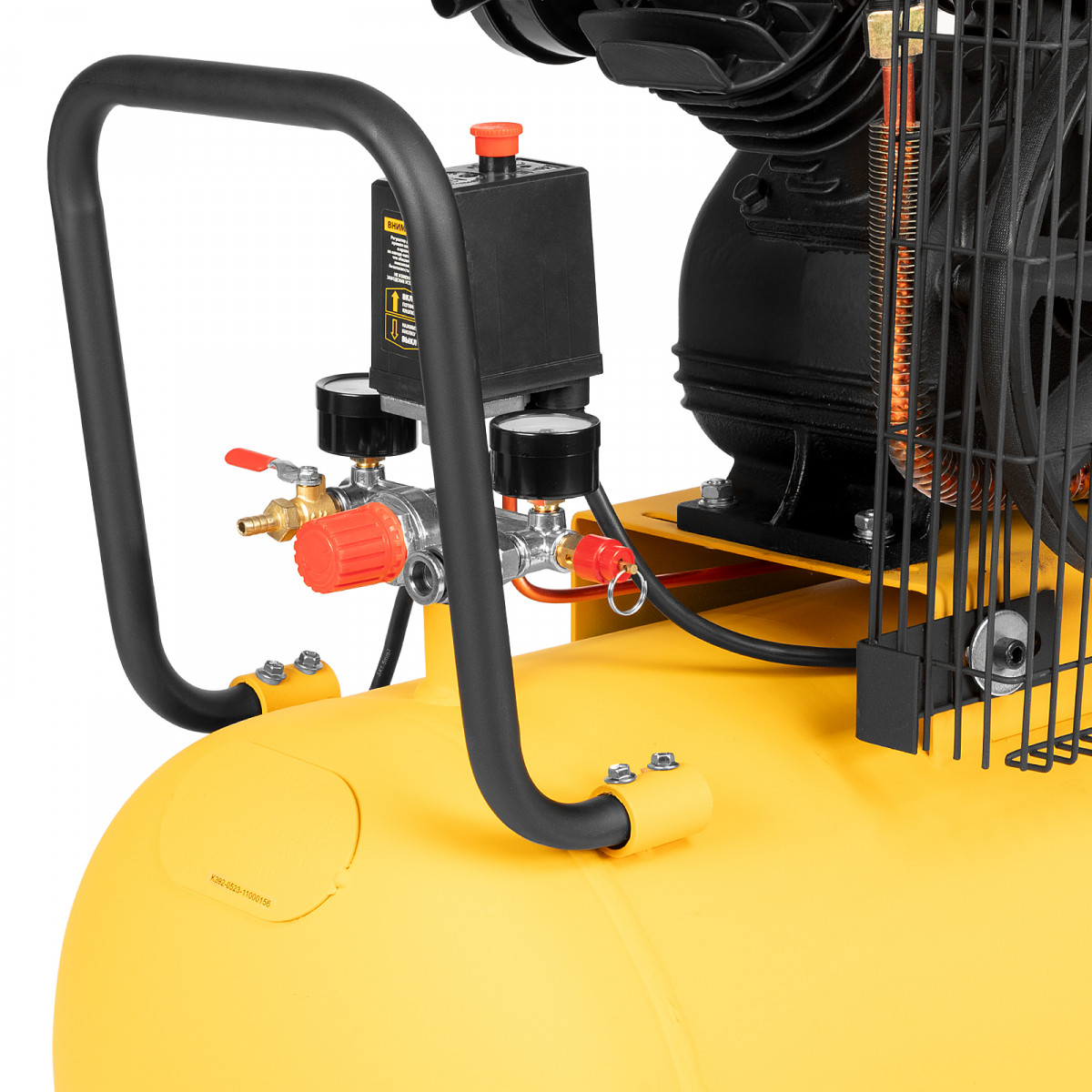 • Устойчивость — опоры с прорезиненным покрытием позволяют удобно разместить компрессор и гасят вибрации.
