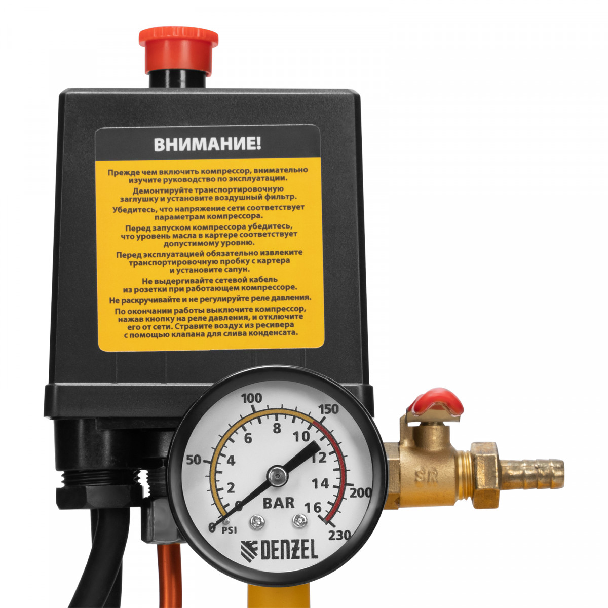 • Автоматизация работы — реле отключает двигатель при достижении максимально допустимого давления и автоматически включает, когда оно ниже установленной нормы.