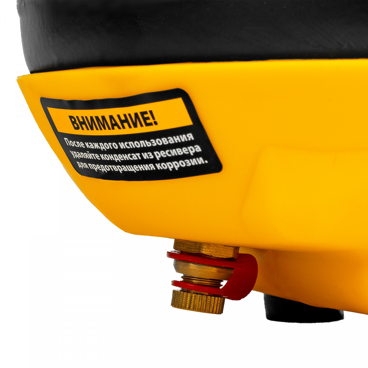 • Простое обслуживание — клапан слива конденсата позволяет оперативно удалить лишнюю влагу после окончания работы, чтобы избежать разрушения ресивера.