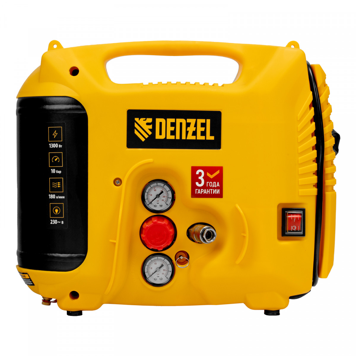 Компрессор воздушный DL1300, 10 бар, 1,3 кВт 180 л/мин 5 л, с набором аксессуаров Denzel