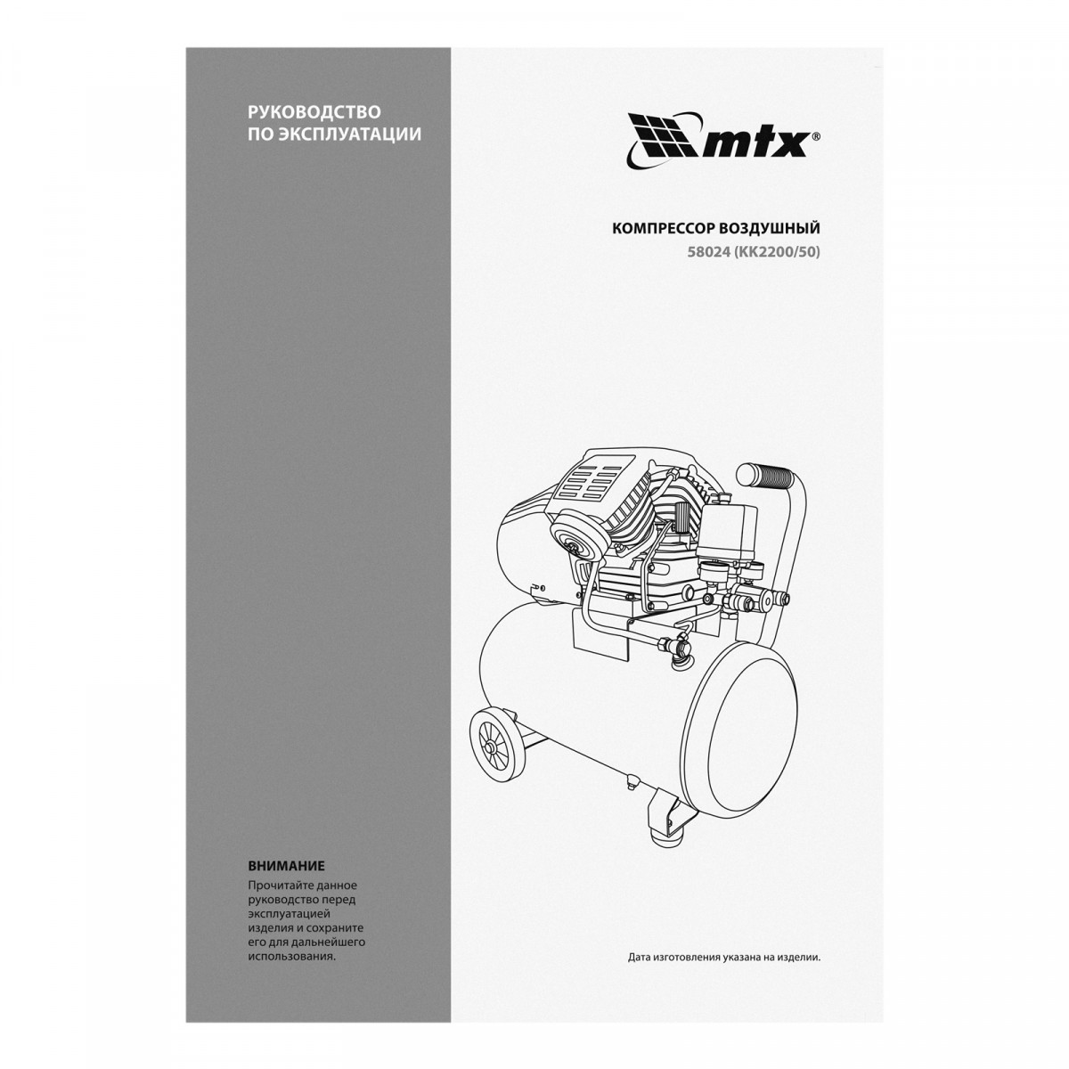 Компрессор воздушный КК-2200/50, 2,2 кВт, 350 л/мин, 50 л, прямой привод, масляный MTX