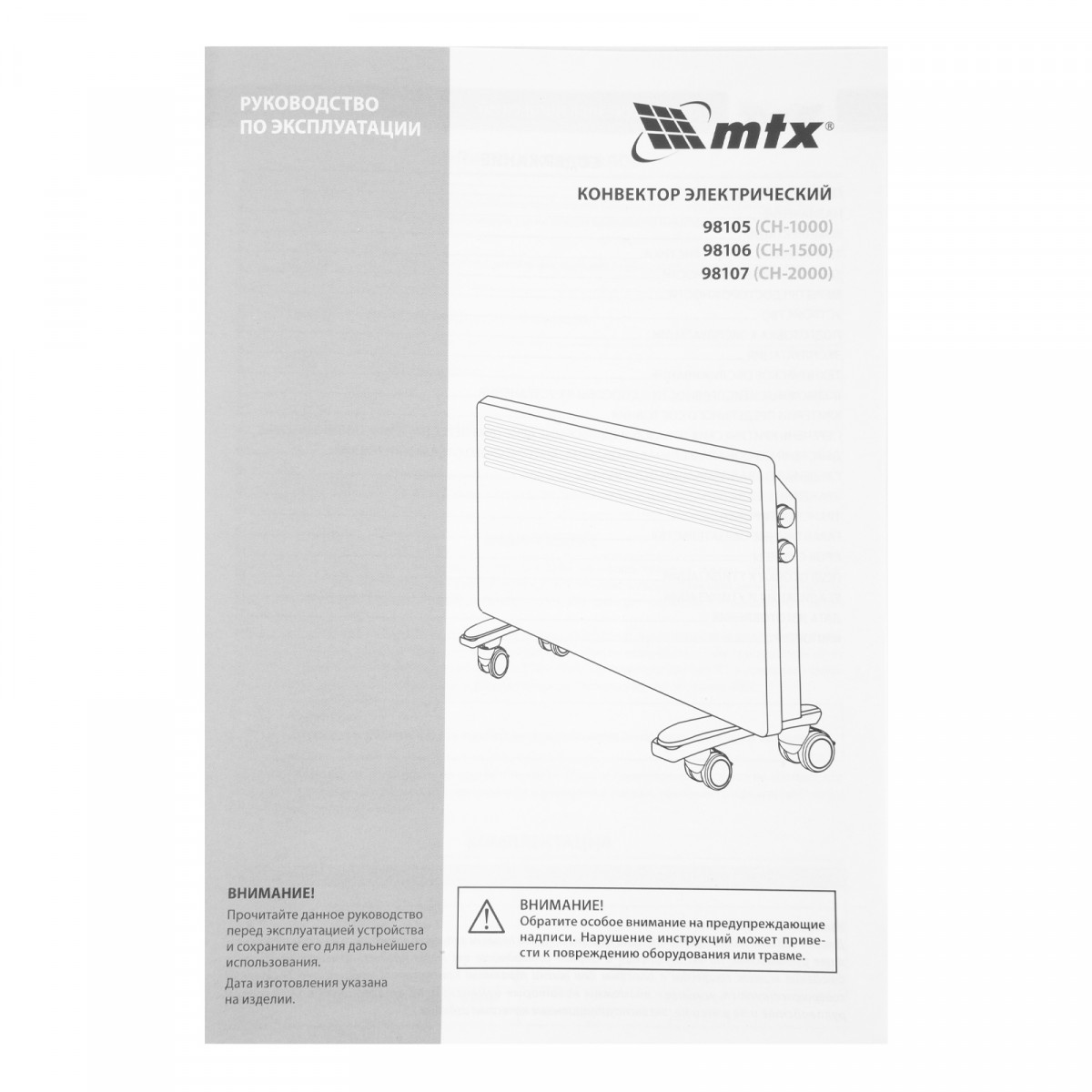 Электрический конвектор MTX CH-2000 98107 максимальной мощностью 2000 Вт, с X-образным нагревателем, термостатом и колесами, — источник тепла для жилых, офисных и хозяйственных помещений. X-образный нагревательный элемент позволяет быстро и равномерно нагреть помещение до нужной температуры. Площадь обогрева составляет 25 м2.
