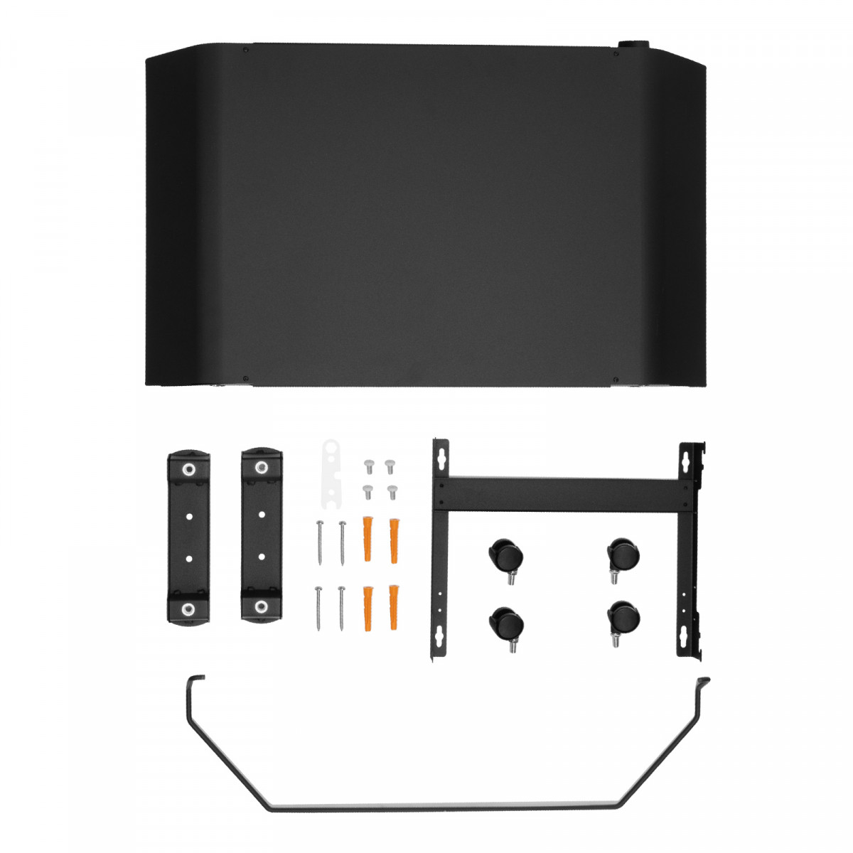 • Напольная или настенная установка — в комплект поставки включена цельнометаллическая крепежная рамка для стены, а также стальные ножки с колесами.