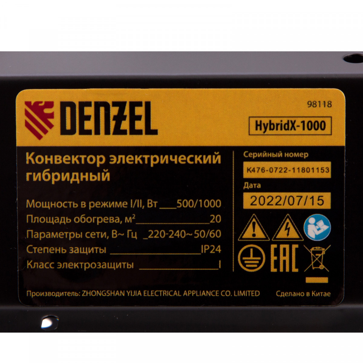 Конвектор гибридный электрический HybridX-1000, ИК нагреватель, цифровой термостат Denzel