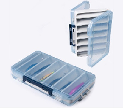 Двухсторонняя коробка для воблеров. Каждый воблер размещается в отдельной ячейке, что полностью исключает сцепливание крючков приманок между собой.
