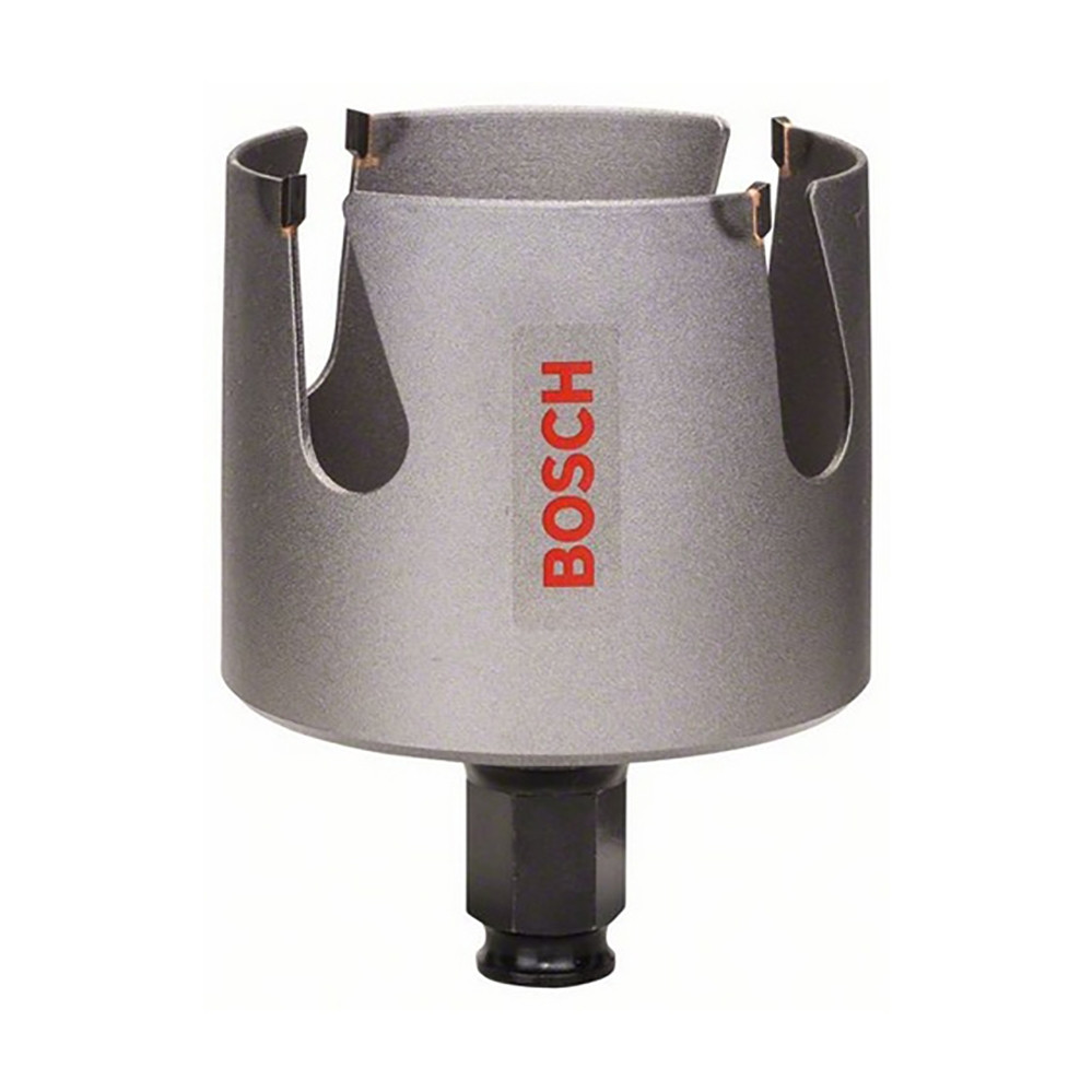 Пильная коронка Bosch 2608584764 применяется совместно с дрелями, а при использовании переходника может применяться и в перфораторах. Данная коронка Multi Construction предназначена для работы как по твердым, так и по мягким материалам. Быстрое и непрерывное сверление обеспечивается наличием каплеобразных пазов, через которые происходит выброс стружки, что делает работу эффективнее. Твердосплавные зубцы с алмазной заточкой обуславливают большую производительность и долгий срок службы оснастки. С такой коронкой используют переходник Power Chenge. С его помощью осуществляют быстрое и надежное крепление, а также извлечение оснастки и центрирующего сверла буквально одним щелчком. Для качественного сверления необходимо правильно подбирать частоту вращения и охлаждение. Находит широкое применение при строительных или ремонтных работах.