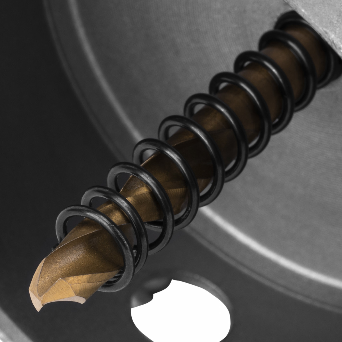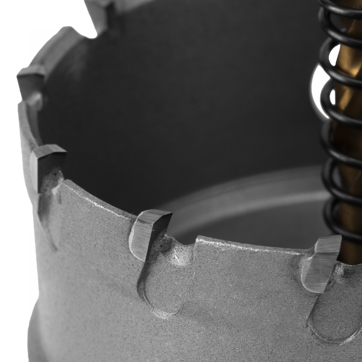 Твердосплавные зубья обеспечивают высокую скорость сверления благодаря режущим пластинам твердостью 91-92 HRC.