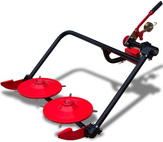 Крепится путем надевания на штатный штырь находящийся спереди мотоблока. Скорость вращения дисков регулируется оборота