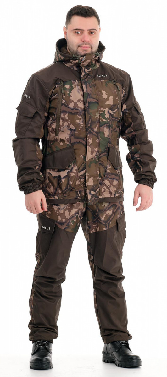 Ткань верха: дуплекс (100% ПЭ, плотность 160 г/кв.м). Отделка «кошачий глаз» (100% ПЭ, плотность 162 г/кв.м). Подклад: флис (тело куртки, капюшон, верхняя часть брюк, 100% ПЭ, плотность 130 г/кв.м), алова без пленки (рукава, 100% ПЭ, плотность 110 г/кв.м), таффета (нижняя часть брюк, плотность 60 г/кв.м, 100% ПЭ) Костюм «Горка Осень» - разработан в компании Novatex на основе легендарного костюма «Горка», используемого в спецподразделениях, а также огромным числом любителей всевозможного экстрима. Костюм «Горка Осень» состоит из куртки и брюк на подтяжках. Отличается специальным анатомическим кроем, характерным для данной линии одежды. Он не стесняет движений, дает свободу перемещения в условиях пересеченной местности. Температура комфорта +10 градусов, температура экстрим 0 градусов. Удлиненная куртка застегивается на молнию с двумя бегунками и двойную ветрозащитную планку с пластиковыми кнопками. Капюшон регулируется по объему и по овалу лица.