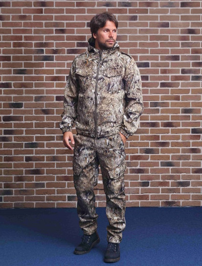 Костюм состоит из прямой куртки с удлиненной спинкой и брюк. Куртка: Удлиненная по спинке утягивается снизу шнуром и фиксаторами. Застежка на усиленную молнию с двумя бегунками. Плечевые погоны с пуговицами. На полочках расположены два нижних прорезных кармана с листочками, два верхних накладных кармана с клапанами. Внутренний накладной карман. В боковых швах имеется вентиляция на молнии. Манжеты на рукавах с резинкой, что обеспечивает плотное комфортное прилегание к руке. Капюшон регулируется по объему и по овалу лица. Брюки: Прямые, слегка зауженные снизу. Пояс задней половинки брюк более широкий для комфортной посадки по фигуре. По бокам пояс собран на резинку, дополнен шлевками, застежка на молнию и пуговицу. Низ брючин регулируется резинкой-шнуром и фиксаторами. 2 боковых кармана и накладные карманы с клапанами на бедрах.