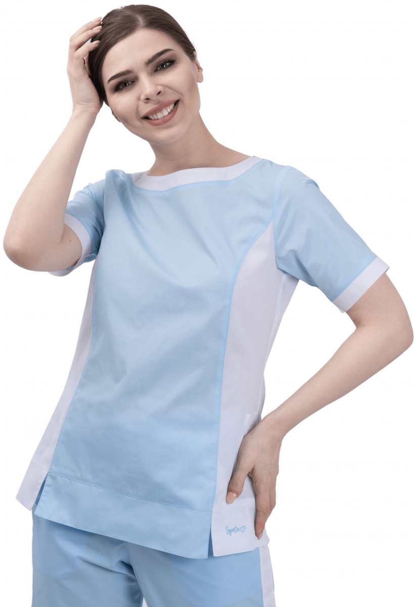 Вид изделия:Костюм Комплектность:Блуза и брюки Назначение:для защиты от ОПЗ (облегчённая) Цвет:св.голубой-белый Основная ткань:Милд, пл.120 г/м² Состав:35%ХБ 65%ПЭ