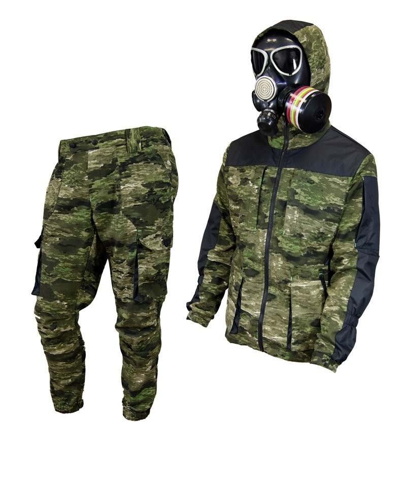 Костюм изготовлен из ткани Spec (Твил) с peach эффектом. Отделка из мембранного материала Poly Join Dots. Костюм имеет анатомический крой : утяжки на предплечьях, по талии и на икрах. Шлевки на брюках. Шляпная резинка на капюшоне и по низу куртки. Нагрудные карманы с отделкой, c клапанами на кнопках. Боковые объемные карманы с отделкой, c клапанами на кнопках. Усиления на коленях. Карман на рукаве на молнии с отделкой и вышивкой. Кармана на брюках. Резинка по низу брюк.