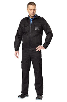 Рекомендуется для охранных структур, работы, активного отдыха. Состоит из куртки и брюк. Куртка прямого силуэта с центральной застежкой на молнию, отложным воротником. Оснащен нагрудными накладными карманами с клапанами на липучках для средств связи, имеется карман на молнии для документов. Поверх кармана прозрачное окно для бейджа. На рукаве накладной карман с клапаном. Объем талии брюк регулируется эластичной лентой. Артикулированные колени. Низ штанин регулируется эластичным шнуром. Ткань: 65% полиэфир, 35% хлопок пл.210 г/м2, ВО