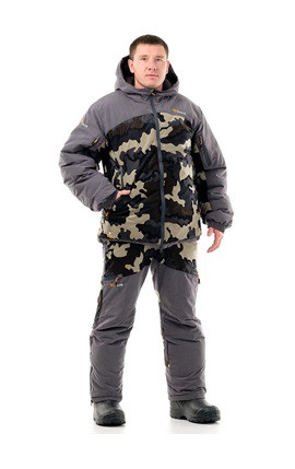 Костюм выделяется своим температурным режимом до -45 градусов. Бесшумной мембранной тканью премиум класса с показателями 10000 на 10000 Основная ткань ""алова"",усиление из ""финляндии"" Магнитные кнопки и влагозащитные молнии в цвет ткани. Высокая и съемная спинка брюк. Не приевшаяся расцветка на рынке выделяет костюм на полке и привлекает внимание покупателя.
