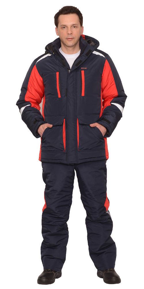 Костюм зимний САТУРН куртка дл,+брюки темно-синий/красный и СОП 50 мм