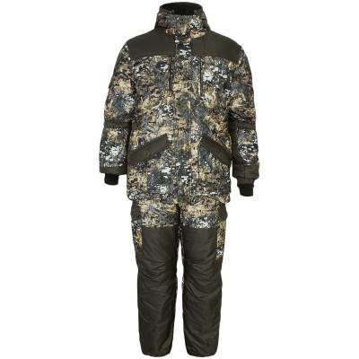 Данная модель рекомендована для активного отдыха, охоты, рыбалки и туризма при низких температурах. Внешний материал костюма «Алова» (материал синтетического происхождения с мембранным водоотталкивающим покрытием на трикотажной основе) плотностью 225 г/м кв. Материал утеплителя синтепон – в куртке 3 слоя по 100 г/м2, в брюках 2 слоя синтепона по 150 г/м2. Материал подкладки капюшона и куртки – флис, в брюках – подкладочная ткань. Костюм оснащён объёмными карманами «антивор» на пуговицах и большие нагрудные прорезные карманы на молнии. Куртка на молнии и закрывается ветрозащитной планкой на пуговицах. Внутри куртки имеется ветрозащитный пояс на кнопках с регулируемым объемом – 2 положения. Куртка имеет глубокий двойной не отстегивающийся капюшон из воротника-стойки. Внутренний материал капюшона мягкий флис, снаружи мембранная ткань Алова, такое сочетание тканей прекрасно защитит от ветра и обеспечит комфортное пребывание на морозе. Удобные утягивающие кулиски помогут отрегулировать капюшон по объему