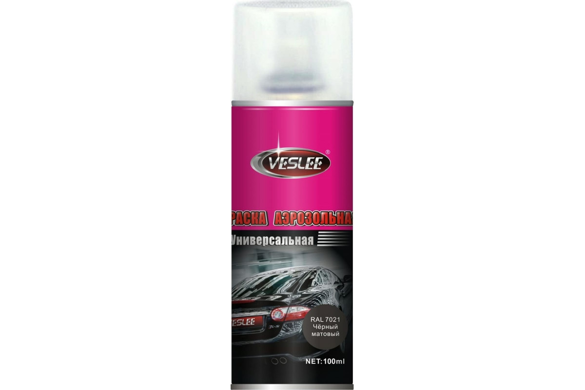 Аэрозольная краска Veslee 100ml цвет черный матовый VL-P2E 7021 предназначена для окрашивания большинства оснований: металл, дерево, пластик, камень, кирпич, бетон. Продукт используют внутри и снаружи помещений во время отделочных работ.