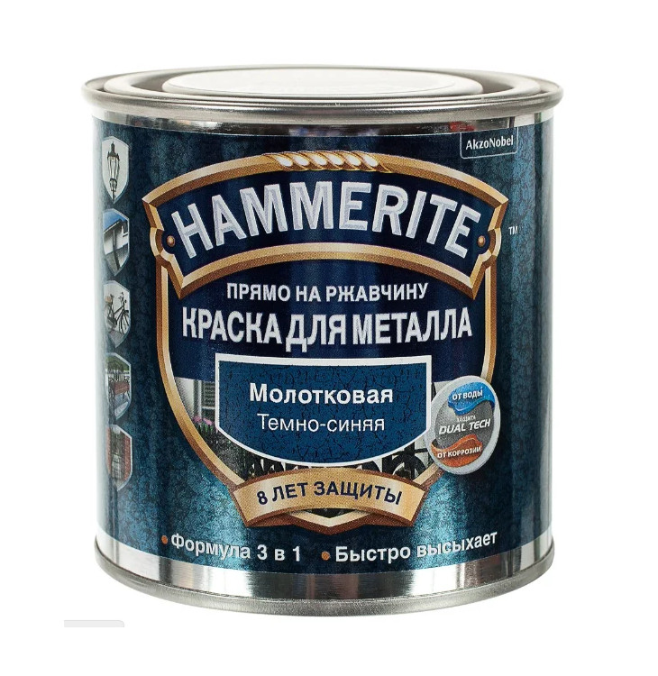 Краска Hammerite молотковая Темно Синяя 0,75л по металлу прямо на ржавчину 3в1