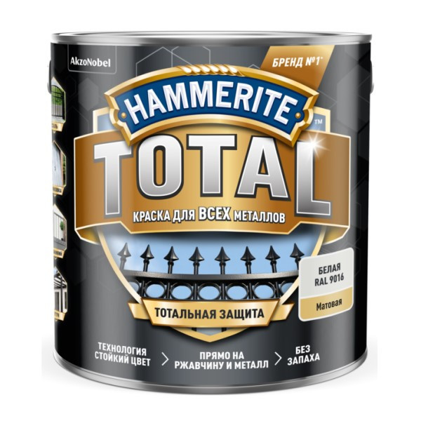 Краска Hammerite Total матовая белая RAL 9016 2,2л