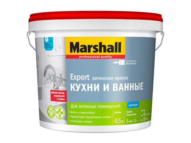 Матовая водно-дисперсионная (латексная) интерьерная краска для кухни и ванной для стен и потолков. Краска для внутренних работ в помещениях с повышенной влажностью, а также в помещениях с высокой эксплуатационной нагрузкой. Образует покрытие с высокими декоративными свойствами, устойчивое к воздействию пара от бытовых приборов (чайника, пароварки) и образованию конденсата. Входящие в состав краски специальные добавки предотвращают возникновение плесени и водорослей. Окрашенная поверхность выдерживает мытье с применением мягких моющих средств.Для внутренних работ Устойчивая к частому мытью и защищает от плесени.