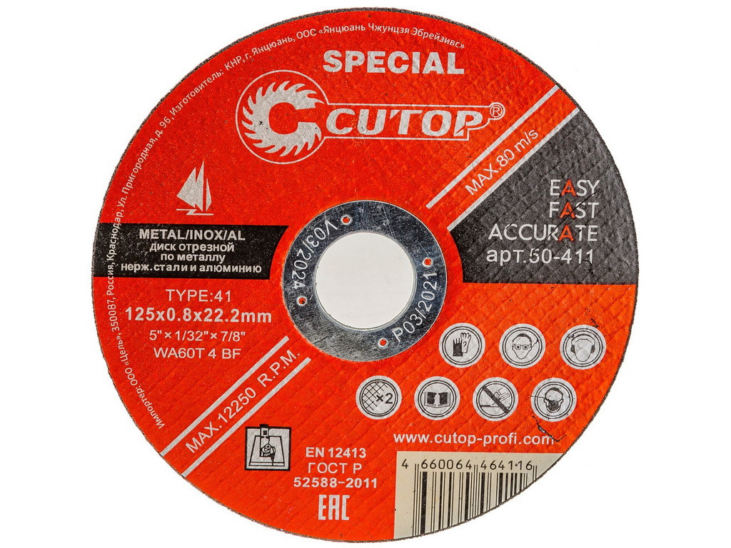 Круг отрезной 125х0,8х22,2 по металлу/нержав Cutop Special