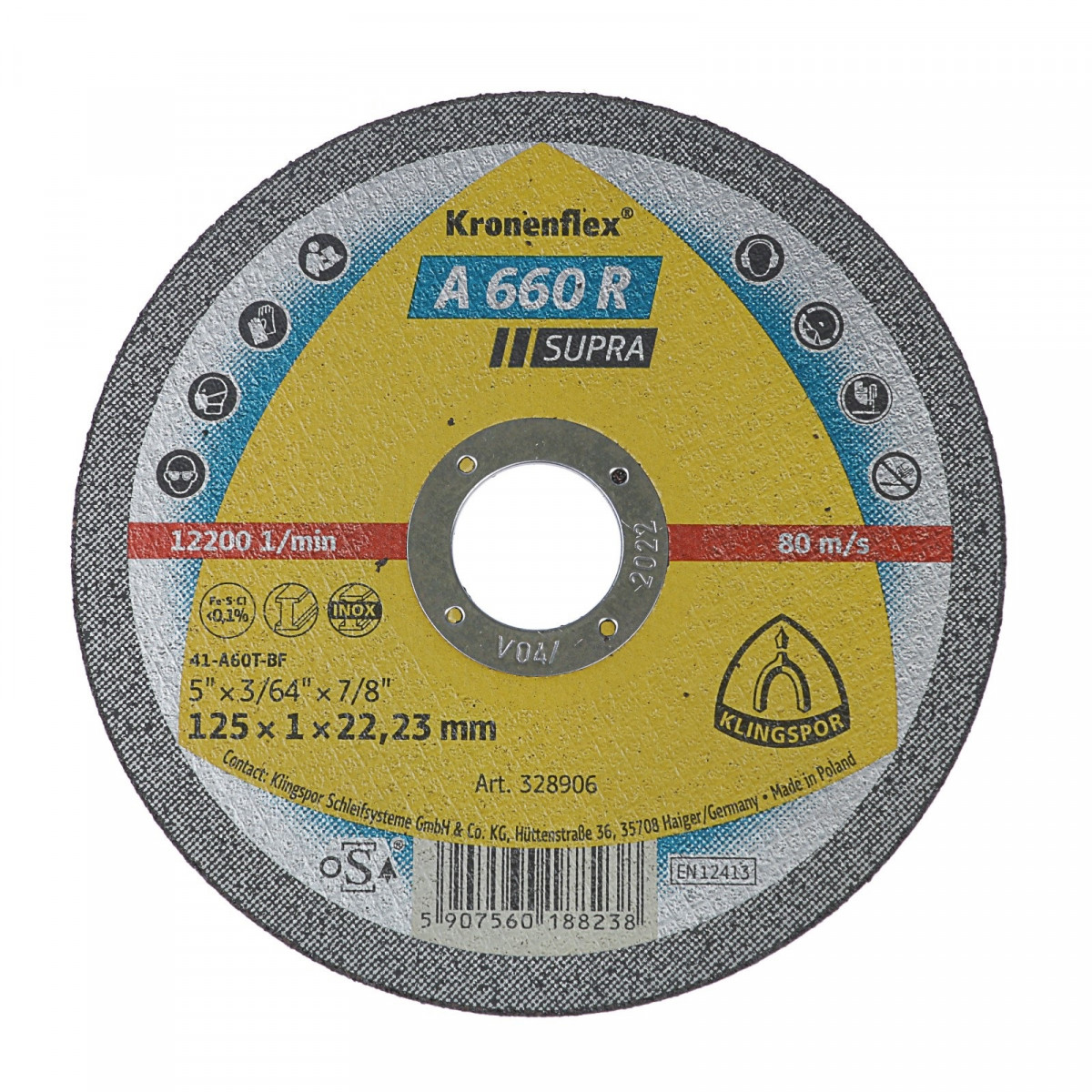 Круг отрезной по металлу KLINGSPOR Kronenflex Supra INOX 125*1,0*22,23 мм