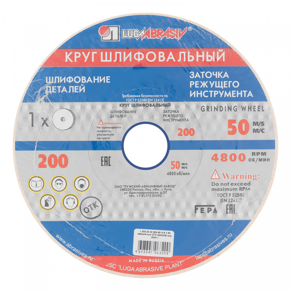 Круг шлифовальный, 200 х 20 х 32 мм, 63С, F90, (K, L) "Луга"