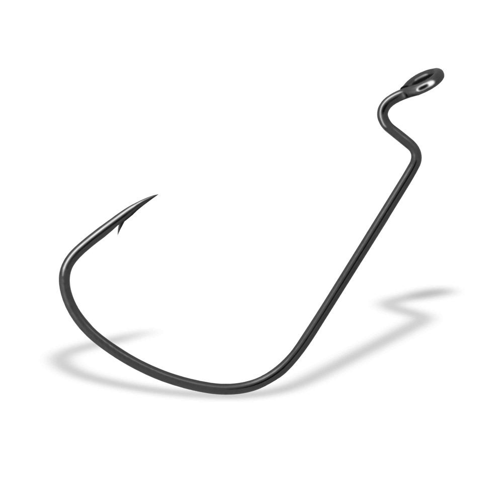 Прочный офсетный крючок с очень широким поддевом используется для ловли на мягкие приманки с широким телом. Крючок выполнен с увеличенным диаметром ушка для более функционального использования в шарнирных монтажах. В производстве крючка использована высокоуглеродистая сталь проиведённая в Японии. Крючок имеет высококачественное антикоррозийное покрытие чёрный никель.
