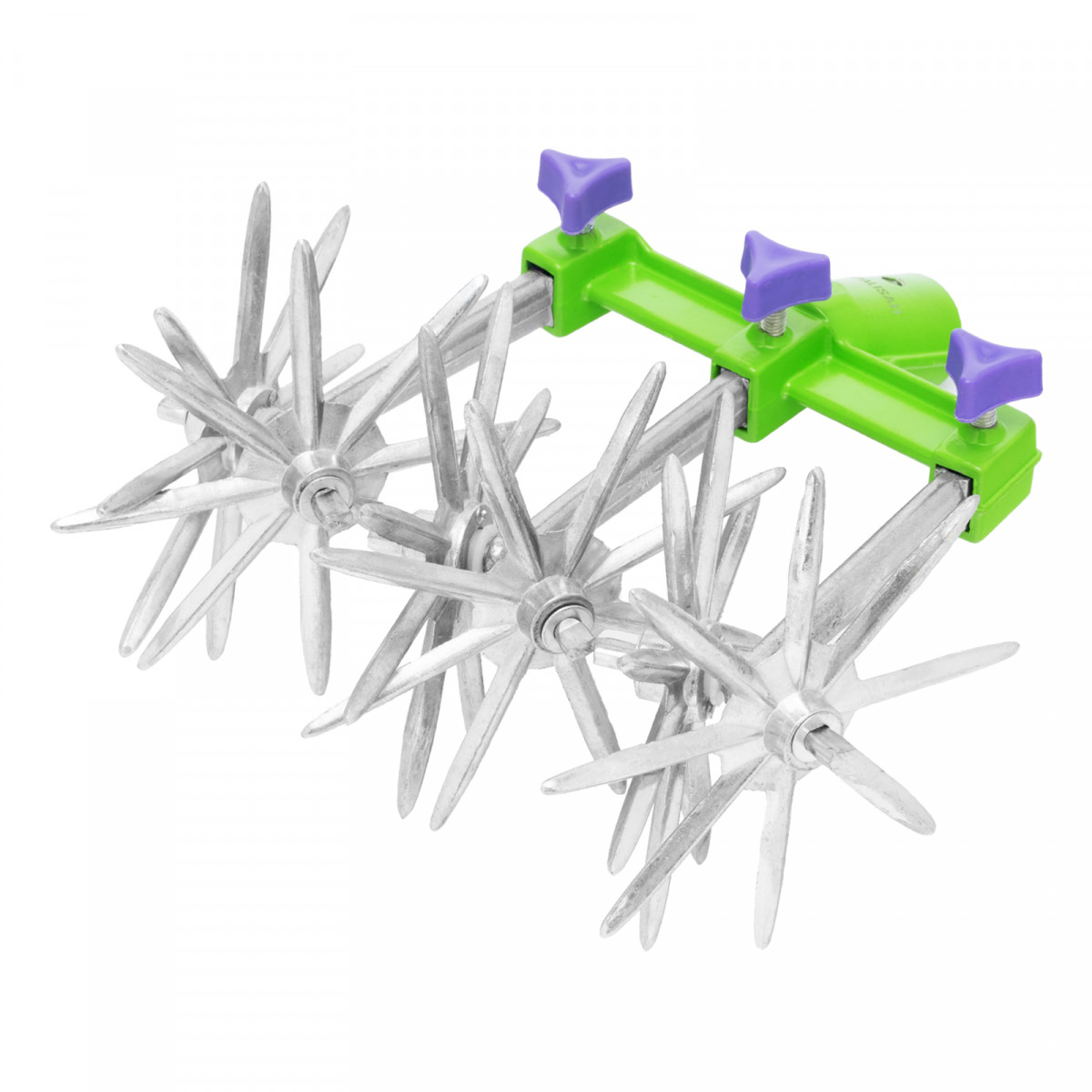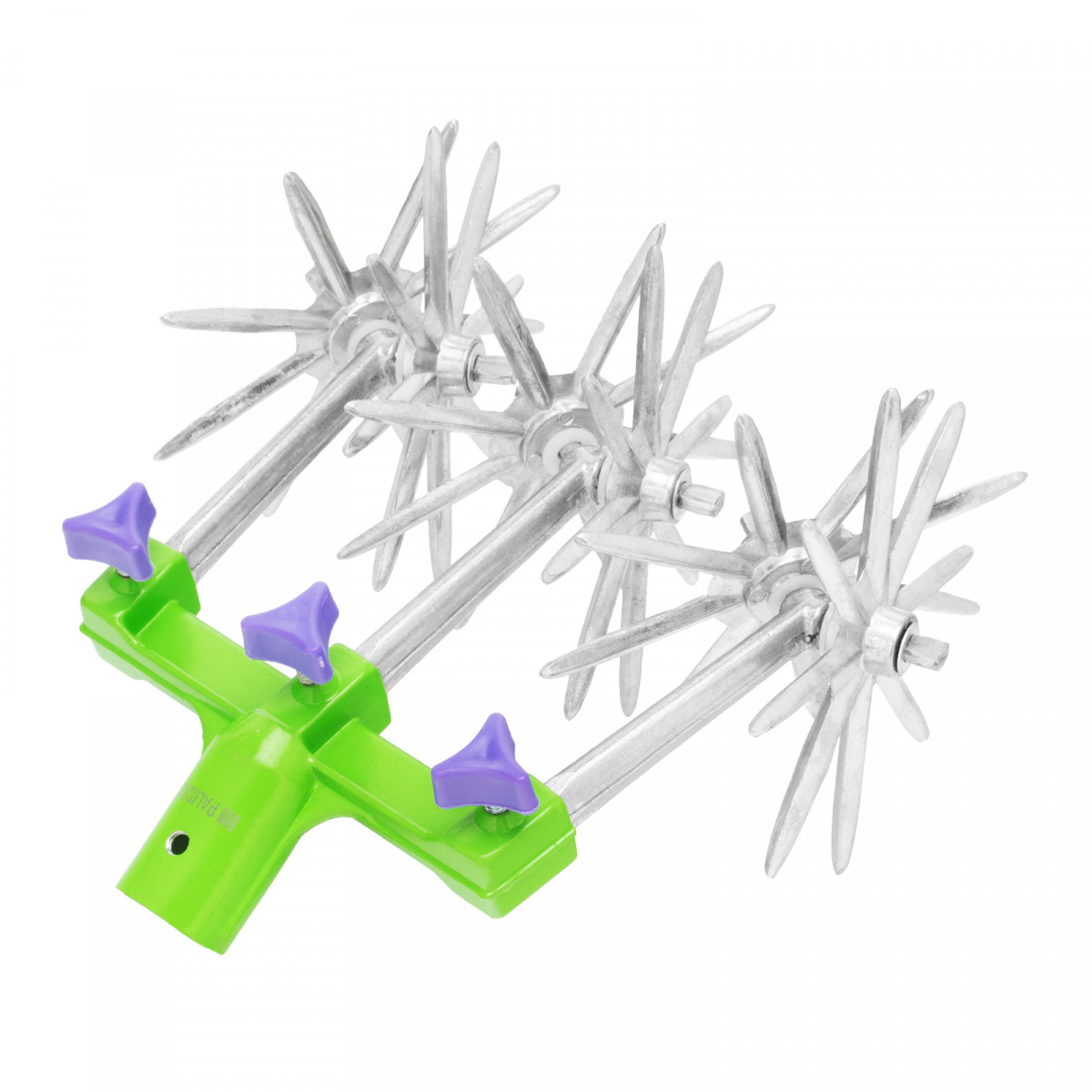 • Съемная рукоятка позволяет с удобством рыхлить грунт на небольших участках одной парой колес.