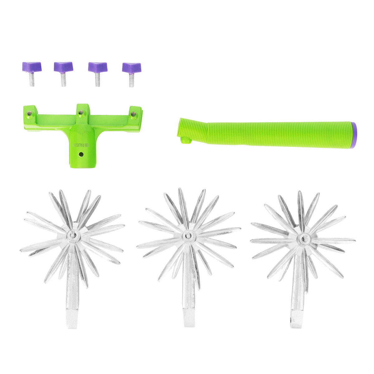 • Колеса снимаются — разборная конструкция позволяет регулировать ширину рыхления для обработки участков разного размера.